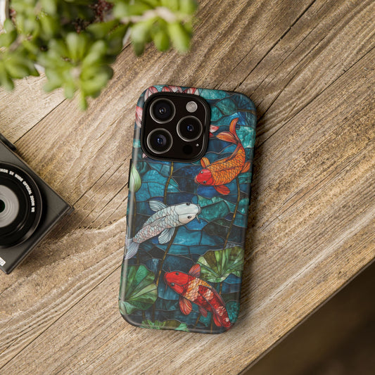 iPhone Phone Case Stained Glass Look Koi Fish Tough Cases Vibrant Oriental Design Unique Gift for Koi Lovers Colorful Phone Accessories for Koi Fish Lovers