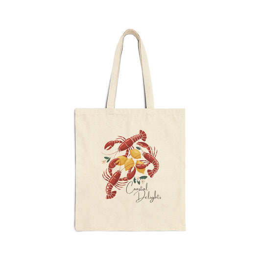 Lobster Print Cotton Canvas Tote Bag Seafood Lover Gift Beach Bag Grocery Tote Reusable Shopping Bag Coastal Decor Fisherman's Aesthetic