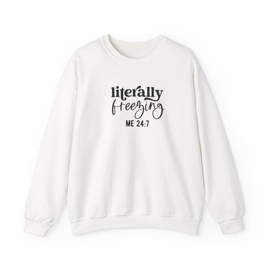 Sweatshirt Literally Freezing Crewneck Sweatshirt Gift for those that are always cold Pun Tee